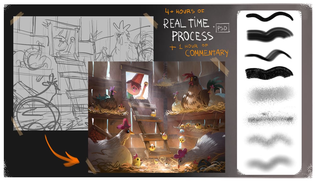 • 4-hour video of real-time painting ("Gnome and Duck with the chicks") that also includes a PSD file. (Unedited)